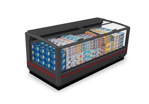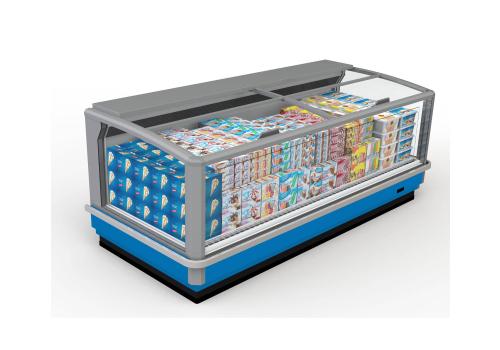 Horizontal display tub cabinet with remote unit for frozen products. It is characterised by large glass panels and push glass lids which guarantee excellent preservation of the product and significant energy saving.