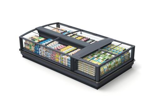 Intended for supermarkets and hypermarkets, it allows good layout flexibility thanks to 2 3 lengths and one head cabinet that allows island compositions.