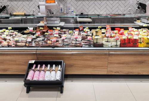 Doch auch die installierten Kühlmöbel müssen an dieser Stelle noch erwähnt werden: Die Theke Velvet hat sich aufgrund ihrer großen Vielseitigkeit als die perfekte Wahl zur Präsentation von Wurst, Käse, Fisch, Delikatessen und Süßspeisen erwiesen. Velvet Tavola Calda, das Modul mit Heißtheke, bereichert das Angebot im Gastronomiebereich mit warmen Gerichten zum Mitnehmen, das Velvet-Modell zur Selbstbedienung gewährleistet die optimale Präsentation der abgepackten Wurstprodukte. Und Velvet SV, das halbhohe Modell, vervollständigt das Angebot mit den Konditorei- und Backwaren.