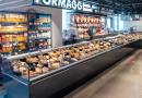Die geschwungene Form von Velvet folgt den Linien des Verkaufsraums und verbindet den Bereich mit Bedienservice für die täglich frisch im Markt zubereiteten Speisen auf sehr elegante Weise mit der SB-Käseabteilung. Außerdem bietet die obere Ablage der Theke genug Platz für das Angebot an ergänzenden Produkten, sodass das Cross-Selling gefördert wird.