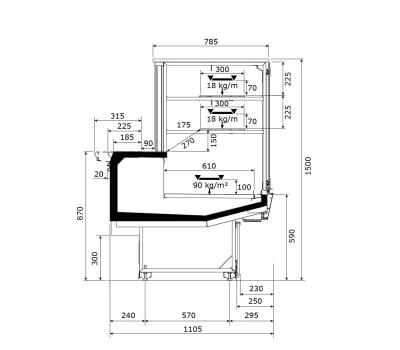 Besonders für mittlere und große Verkaufsflächen geeignet, außerdem für Fachgeschäfte wie Metzgereien und Restaurants. Insbesondere für die Präsentation von frischen Fleischprodukten entwickelt.