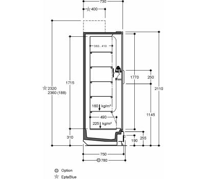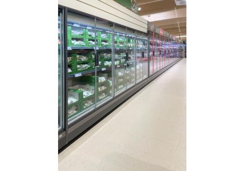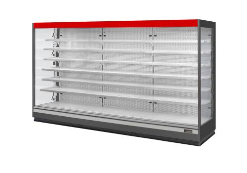 Vertical chilled display cabinet with remote unit for fresh pre-packed products. Available in an open version or with full height doors fitted with transparent handles that ensure excellent visibility and preservation of the product on display.