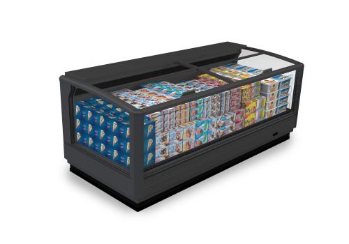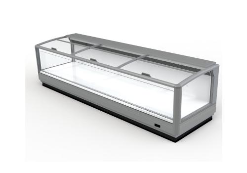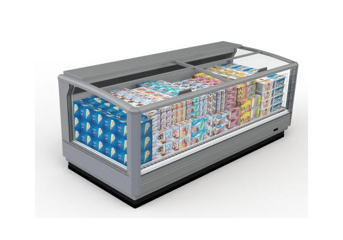 Horizontal display tub cabinet with remote unit for frozen products. It is characterised by large glass panels and push glass lids which guarantee excellent preservation of the product and significant energy saving.