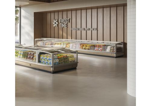 Intended for supermarkets and hypermarkets, it allows good layout flexibility thanks to 2 3 lengths and one head cabinet that allows island compositions.