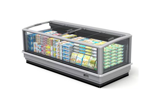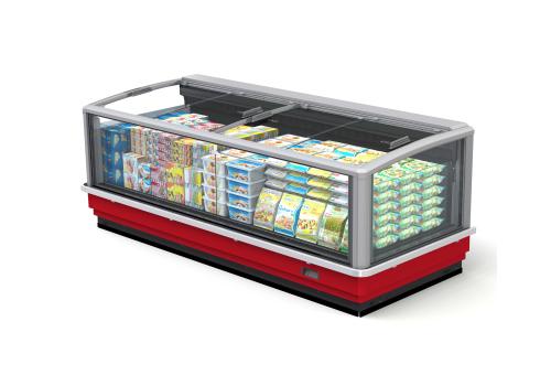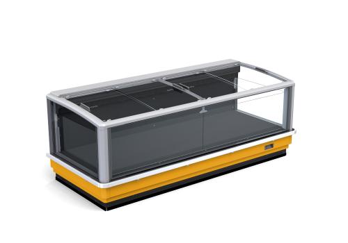Horizontal display tub cabinet with remote unit for frozen products. It is characterised by large glass panels and sliding glass lids which guarantee excellent preservation of the product and significant energy saving.