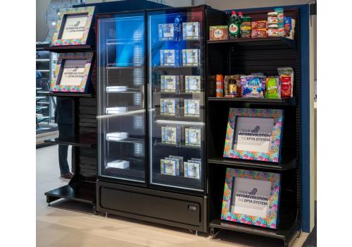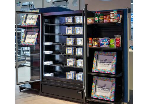 Easy to integrate with a store's dry products shelving, it offers new and interesting possibilities to promote the product on display.
