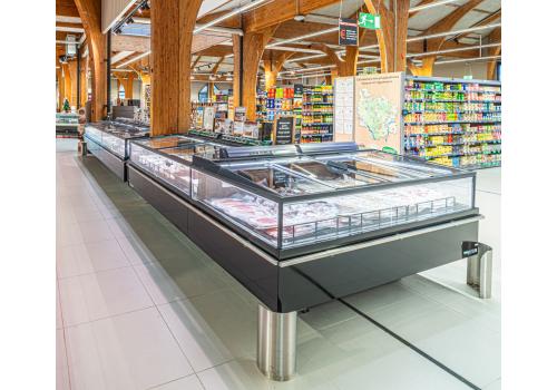 Silk Closed is an island designed for fresh products. Fitted with straight glass sliding covers, or curved glass push covers, easy to clean and install as retrofit, characterised by ergonomic handles and aesthetically light profiles, is available in two Versions, Silk Closed and Silk Closed Max with increased load capacity and two depths: C (1650mm) and N (1890mm). Silk Closed a unique tool in the fresh products area, merging elegance and aesthetics with high efficiency. 50% energy saving and Energy class C. Excellent merchandising thanks to the elevated transparency of the tempered glass sliding covers which enhance the product on display. Internal (front and rear) and external (base panels) LED lighting.