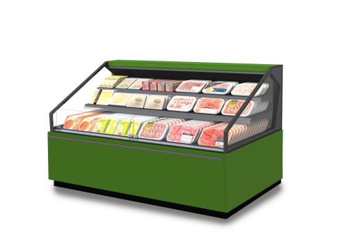 Meuble réfrigéré semi-vertical ouvert avec groupe à logé fonctionnant au gaz propane R290 destiné aux produits frais préemballés. Grâce à ses nombreuses configurations et à sa grande polyvalence, il permet d'organiser l'espace et de proposer une offre variée et de qualité.