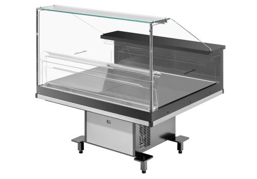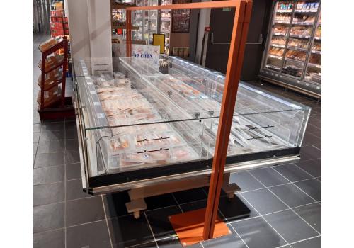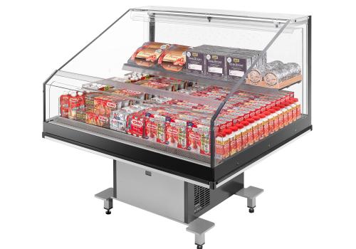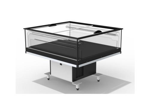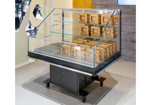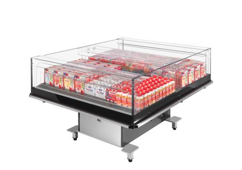 Îlot réfrigéré promotionnel avec groupe logé fonctionnant au gaz propane R290, il offre une visibilité exceptionnelle sur les produits exposés.