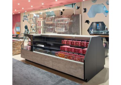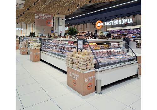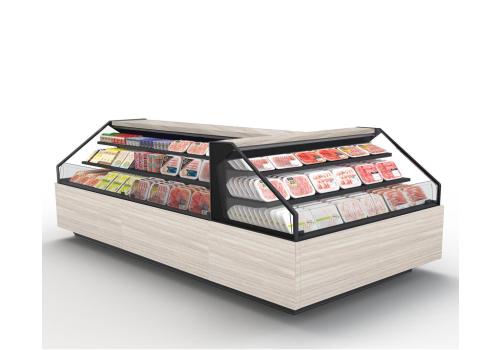 Destiné aux supermarchés et aux hypermarchés, ce meuble extrêmement personnalisable et disponible dans différentes esthétiques offre un excellent rapport entre la surface d'exposition et l'espace occupé au sol.