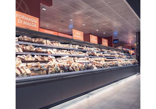 Meuble réfrigéré semi-vertical ouvert avec groupe à distance destiné aux produits frais préemballés. Grâce à ses nombreuses configurations et à sa grande polyvalence, il permet d'organiser l'espace et de proposer une offre variée et de qualité.