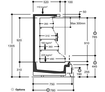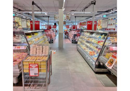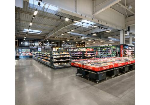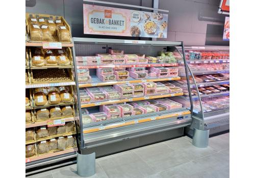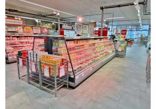 Destiné aux supermarchés et aux hypermarchés, c'est un meuble discret qui met en valeur les produits exposés et s'intègre dans le magasin avec élégance.