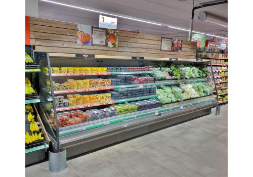 Meuble réfrigéré semi-vertical ouvert avec groupe à distance, destiné aux produits frais préemballés. Il se caractérise par un excellent merchandising tout en ayant des consommations réduites.