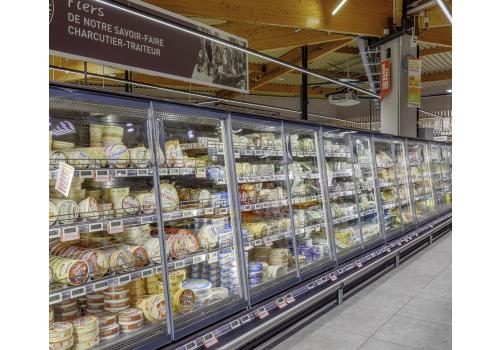 Destiné aux supermarchés et aux hypermarchés, c'est un meuble réfrigéré discret qui met en valeur les produits exposés et s'intègre dans le magasin avec élégance.