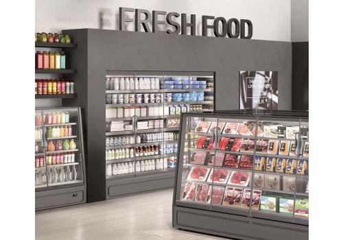 Arreda elegantemente tutte le superfici di vendita, dai minimarket agli ipermercati. Ottima risposta all'esigenza dei retail orientati alla realizzazione di negozi di prossimità.
