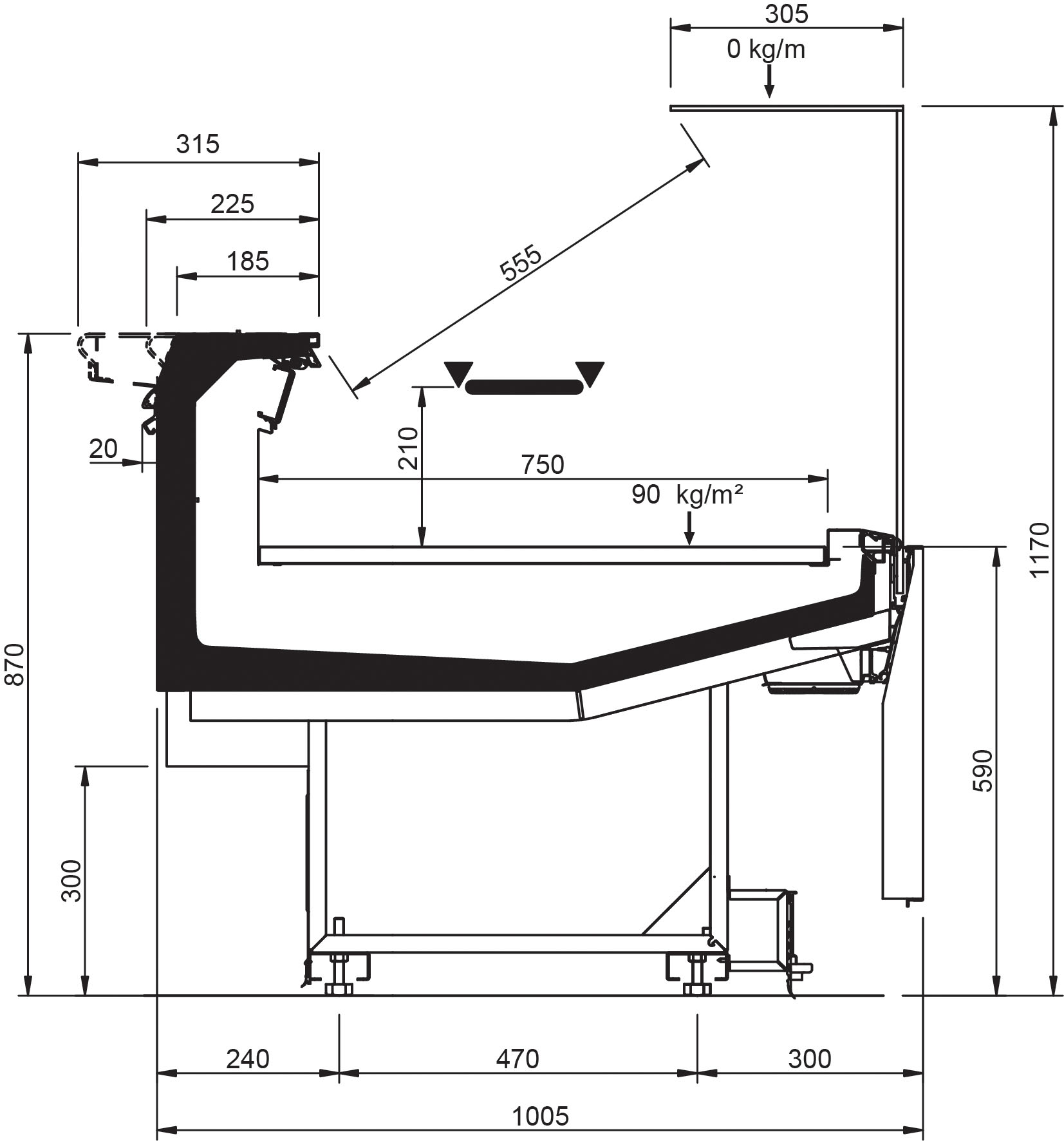 Adatta alle medie e grandi superfici di vendita, nonché per negozi specializzati quali gelaterie e pasticcerie. L'esposizione del prodotto è valorizzata e facilitata dal ripiano intermedio e dal piano di fondo estraibile sul retro.