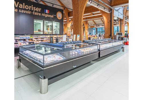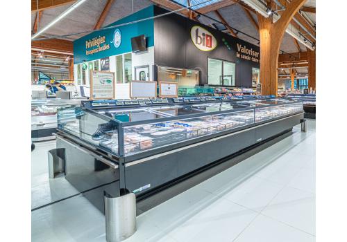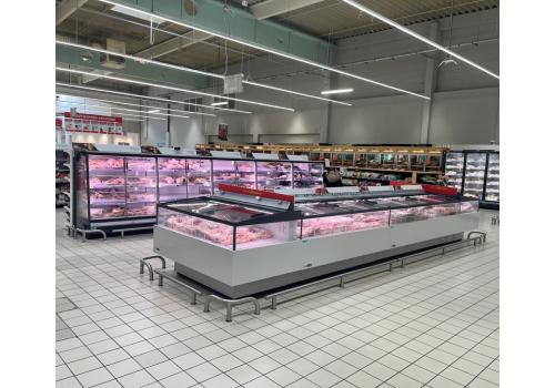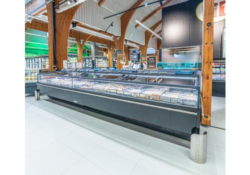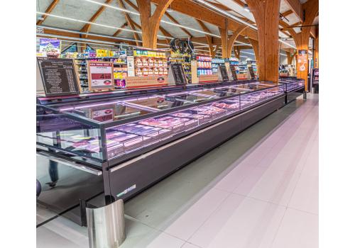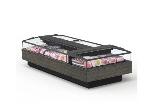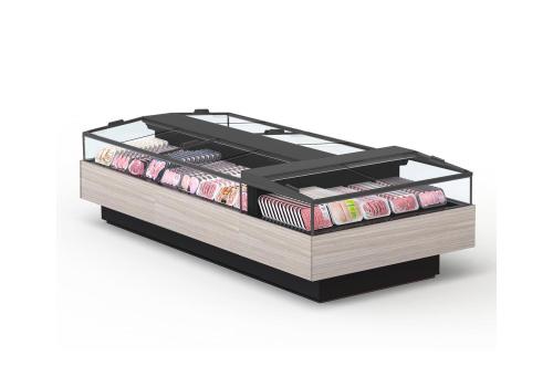 Silk Closed is an island designed for fresh products. Fitted with straight glass sliding covers, or curved glass push covers, easy to clean and install as retrofit, characterised by ergonomic handles and aesthetically light profiles, is available in two Versions, Silk Closed and Silk Closed Max with increased load capacity and two depths: C (1650mm) and N (1890mm). Silk Closed a unique tool in the fresh products area, merging elegance and aesthetics with high efficiency. 50% energy saving and Energy class C. Excellent merchandising thanks to the elevated transparency of the tempered glass sliding covers which enhance the product on display. Internal (front and rear) and external (base panels) LED lighting.