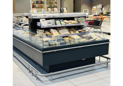 Semivertical self-service and double well refrigerated cabinet for fresh pre-packed products, with an excellent ratio between display volume and footprint occupied on the ground.