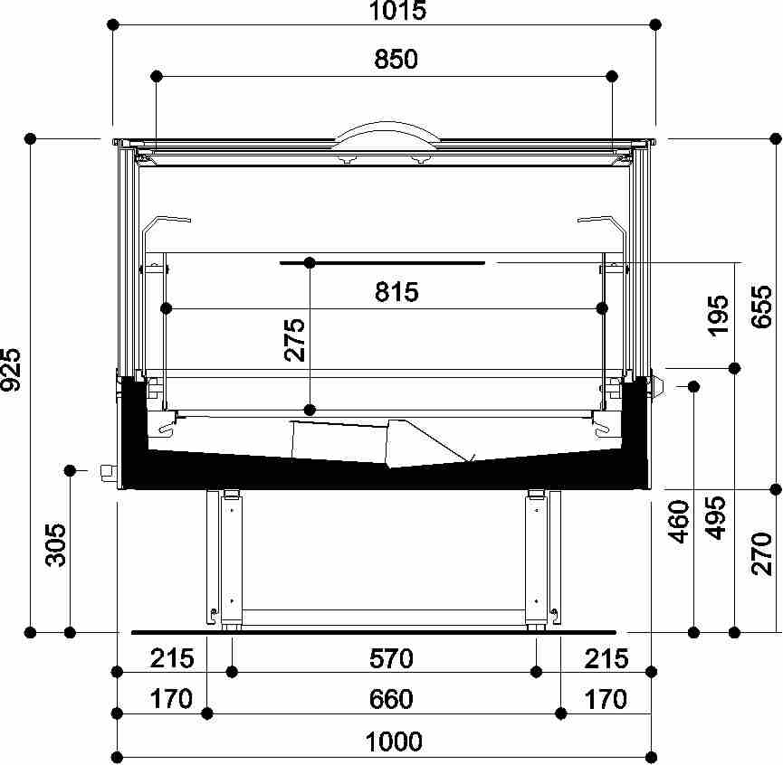 Modern and essential design that combines sturdiness and lightness thanks to the full-height glass panels on all 4 sides that guarantee maximum visibility of the products on display.