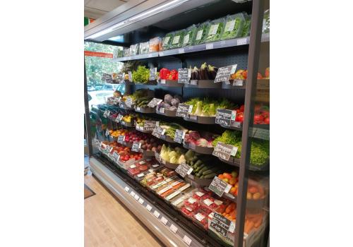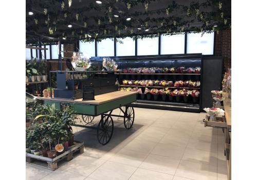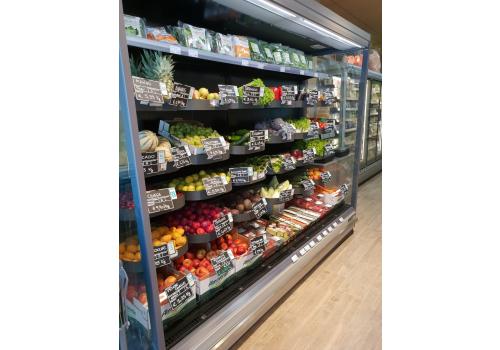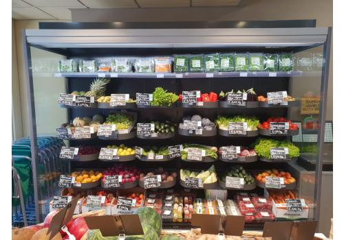 Vertical open chilled display cabinet with remote unit for the presentation and preservation of fruit, vegetables, plants and flowers