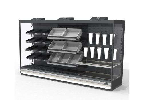 Intended for themed areas of supermarkets and hypermarkets, it avails of numerous accessories and fit-outs able to allow best display in any sales situation.