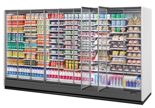 Vertical chilled display cabinet with remote unit for fresh pre-packed products. Available with full height doors fitted with transparent handles that ensure excellent visibility and preservation of the product on display.