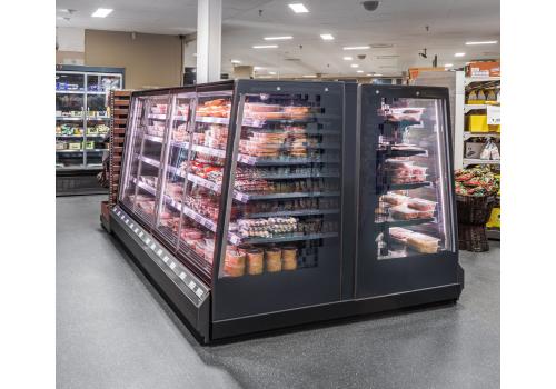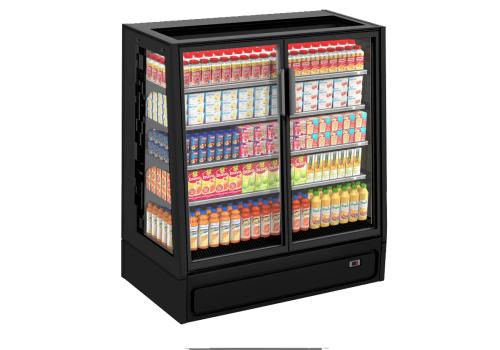 Full-glass doors, panoramic terminal ends and LED lighting system by EPTA make it an elegant addition to any small sales surface.