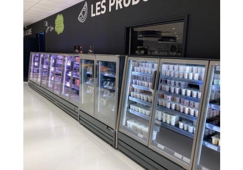 The full-glass doors, panoramic terminal ends and the LED lighting system by EPTA make it the elegant furnishing element for small and medium sales surfaces.