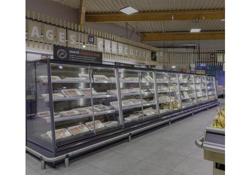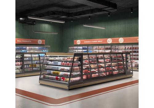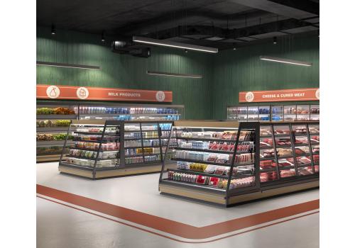 Intended for supermarkets and hypermarkets, it is a discrete cabinet, which emphasises the goods, displayed while elegantly furnishing the store.