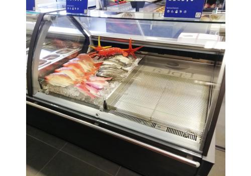 Velvet N Fish version, is dedicated to the display of fish on a bed of chipped ice and pre-packaged fish. This model meets the needs of consumers who are increasingly interested in the purchase of fresh and healthy foods.