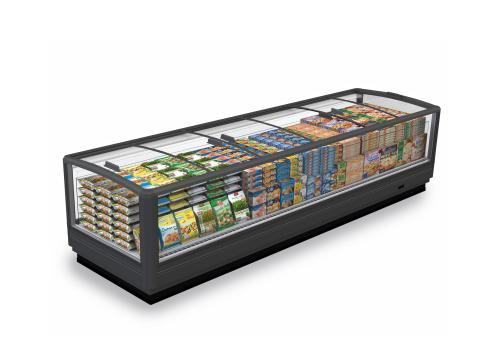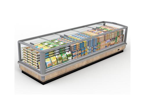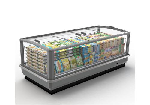 Horizontal display cabinet with remote unit of compact and medium size for frozen. It is characterised by easy access to the product on display and large glass panels.