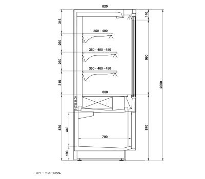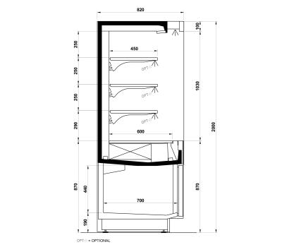 Intended for all types of store, it is available with chilled storage area in the base, in various aesthetic solutions and in an open version or a closed version with glass doors.